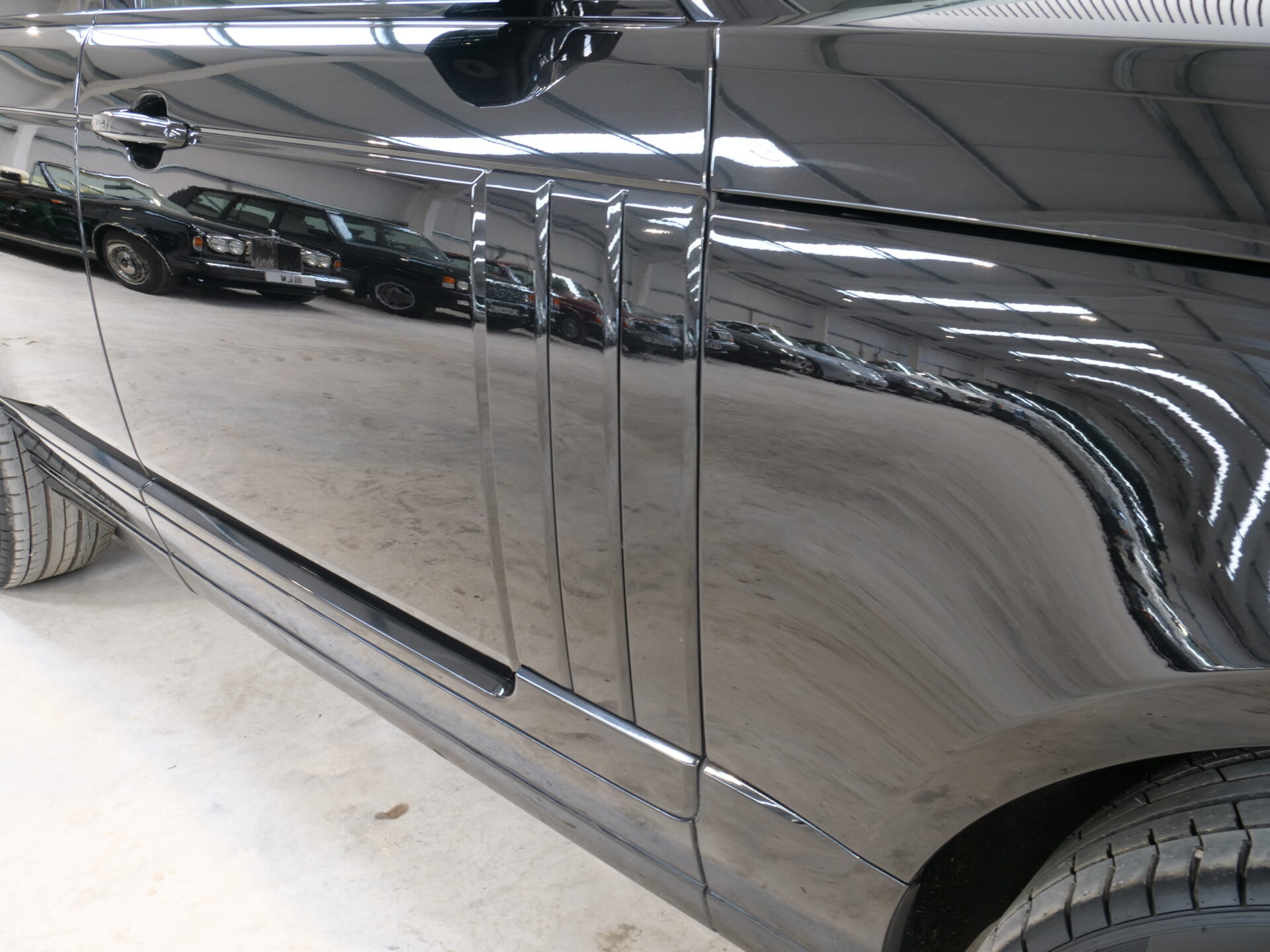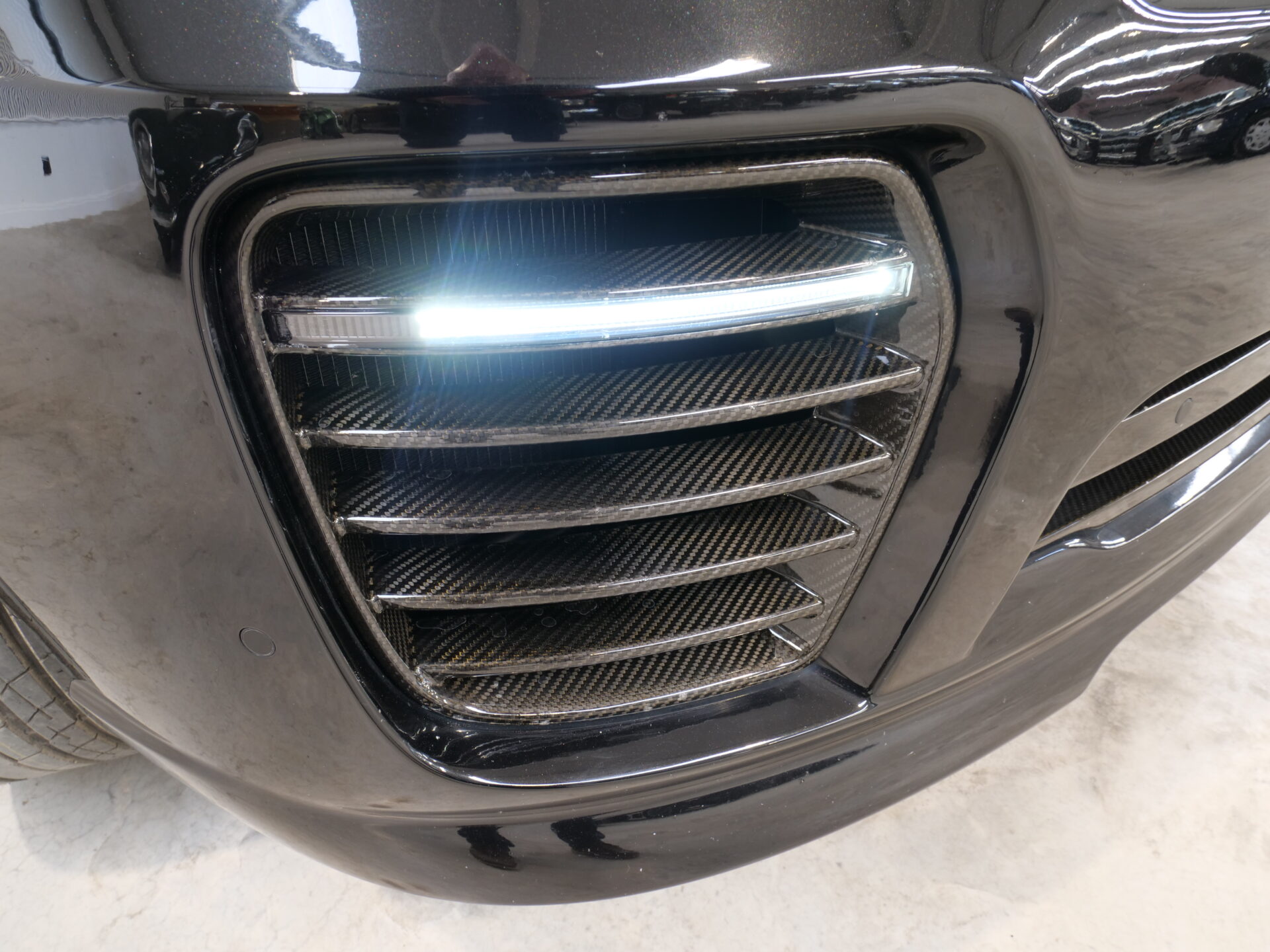 Finished in Santorini Black with complementing black Leather interior, this car was a good looking example to begin with. it has then had the 23″ Vossen Urban Alloys fitted which we have just fitted brand new tyres too, along with Urban Extrior Black Badge pack, Urban Carbon fibre Rear Diffuser, front Grille, and Bumper inserts. The front bumper also has LED Daytime Running Lights which not only add to the awesome looks of the car, but give amazing light emission too.